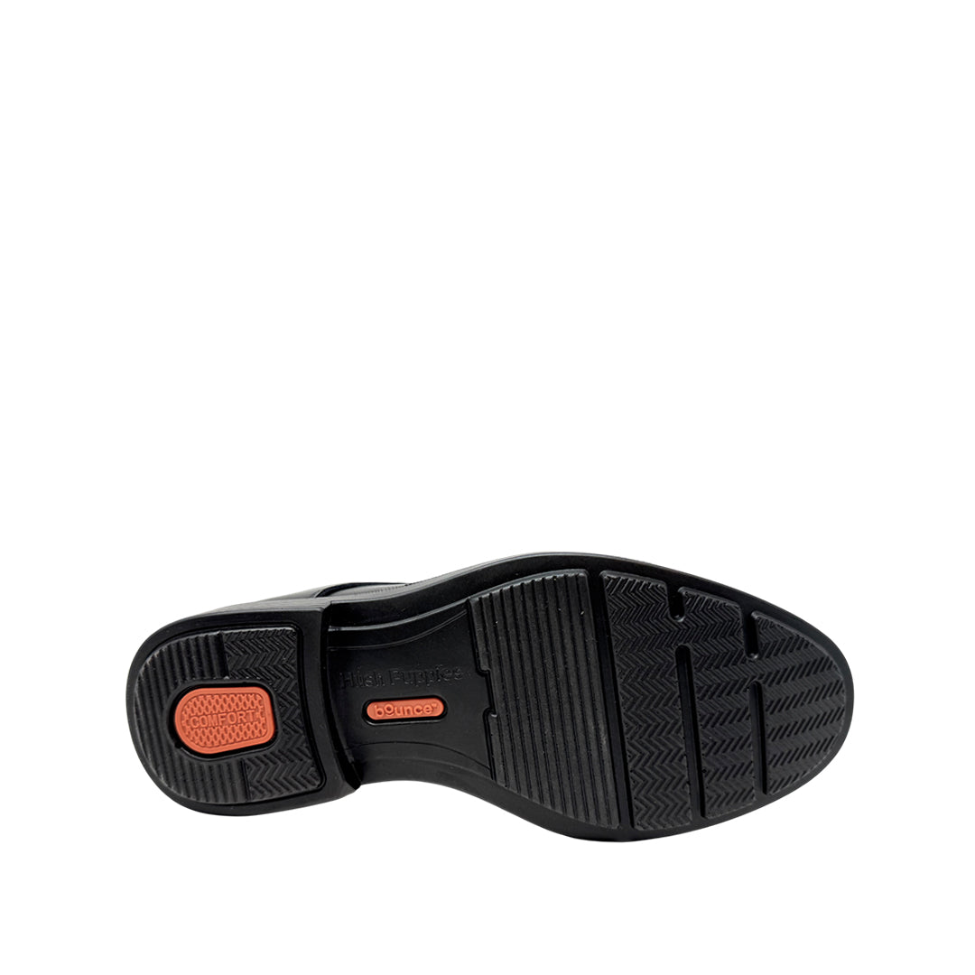 Zapatos escolares Marcus James Lu para niño color negro con tecnología Bounce™ y plantilla que absorbe impacto y devuelve impulso, reduciendo la fatiga y ofreciendo comodidad estable.