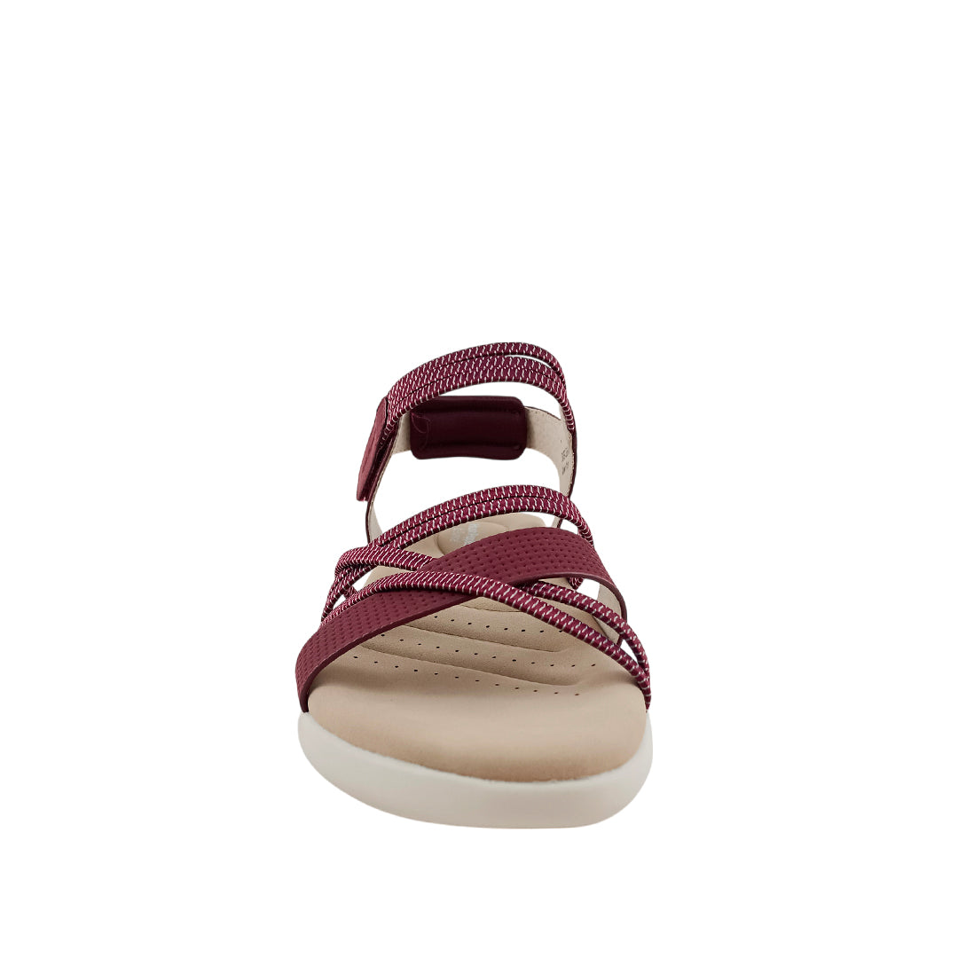 Las sandalias flats Denisse 4 para mujer en color burgundy están elaboradas en cuero suave y cuentan con una plantilla Bounce™ combinada con una talonera personalizada impresa en 3D, que ofrece una amortiguación superior y duradera para una comodidad excepcional durante todo el día.