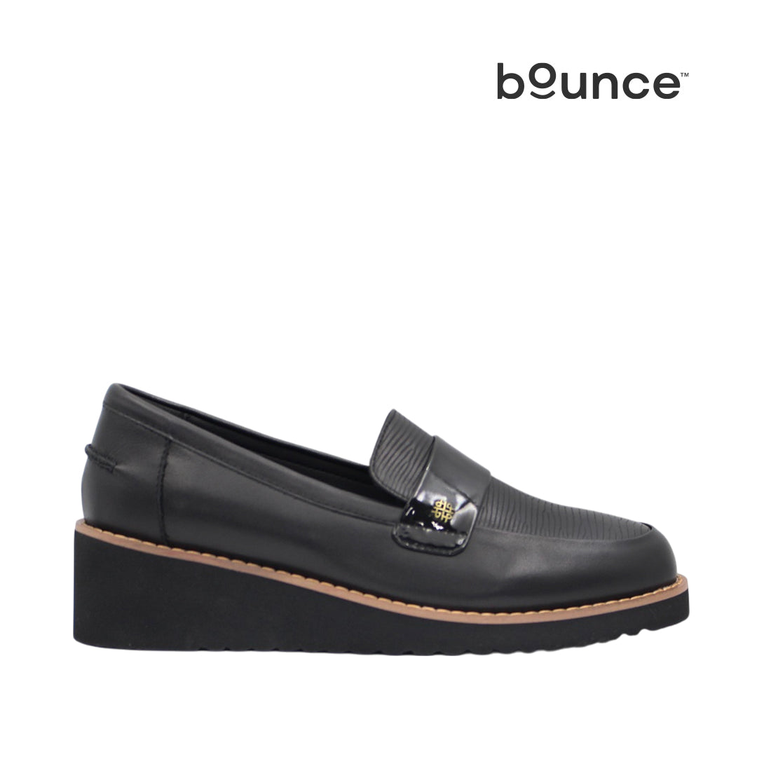 Mocasines Sefora para mujer en color negro, elaborados en cuero. Incorporan tecnología Bounce™ con plantilla extraíble que brinda comodidad, rebote de energía en cada paso y gran durabilidad para acompañarte todo el día.