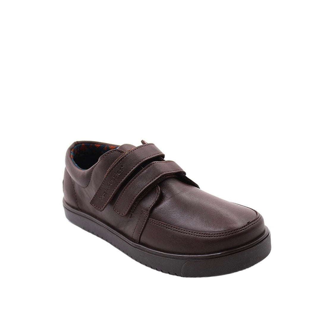 Zapato escolares para niño elaborados en cuero con doble velcro ajustable y plantilla pre conformada que brinda apoyo al arco del pie. Su suela está diseñada con un sistema de amortiguación que minimiza el impacto de cada paso y su tecnología All Day Comfort permite al pie un movimiento flexible y natural, manteniéndolo cómodo durante todo del día.