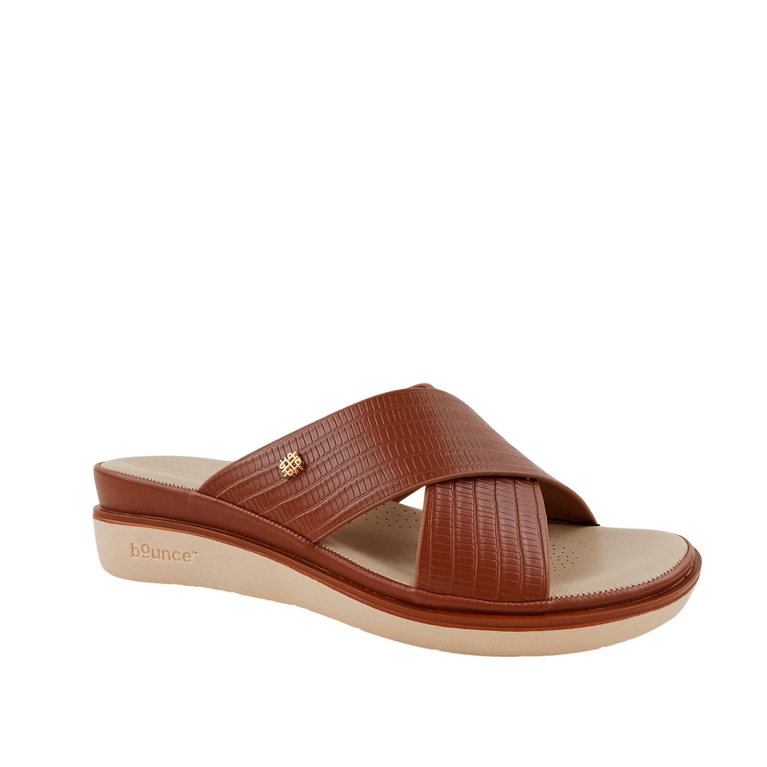 Disfruta de una comodidad sin precedentes con nuestras sandalias flats con tecnología Bounce. Con una suela de hule y una correa ajustable, estas sandalias de cuero son versátiles y perfectas para cualquier atuendo casual.