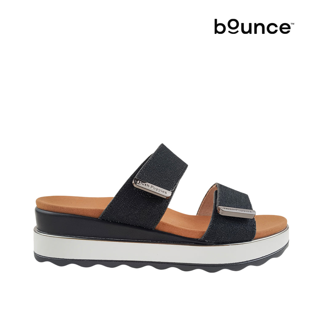 Las sandalias de plataforma Gillian 2 para mujer en color negro están elaboradas en cuero suave y cuentan con una plantilla Bounce™ combinada con una talonera personalizada impresa en 3D, que ofrece una amortiguación superior y duradera para una comodidad excepcional durante largas horas.