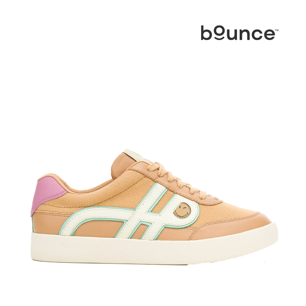 Zapatillas Seventy 8 Charlie para mujer color tostado de la colección Smiley. Integra la tecnología Bounce™ con plantilla extraíble de alta memoria que devuelve energía en cada paso, mantiene la comodidad durante todo el día y conserva su forma tras el uso para una durabilidad superior frente a materiales de confort momentáneo.