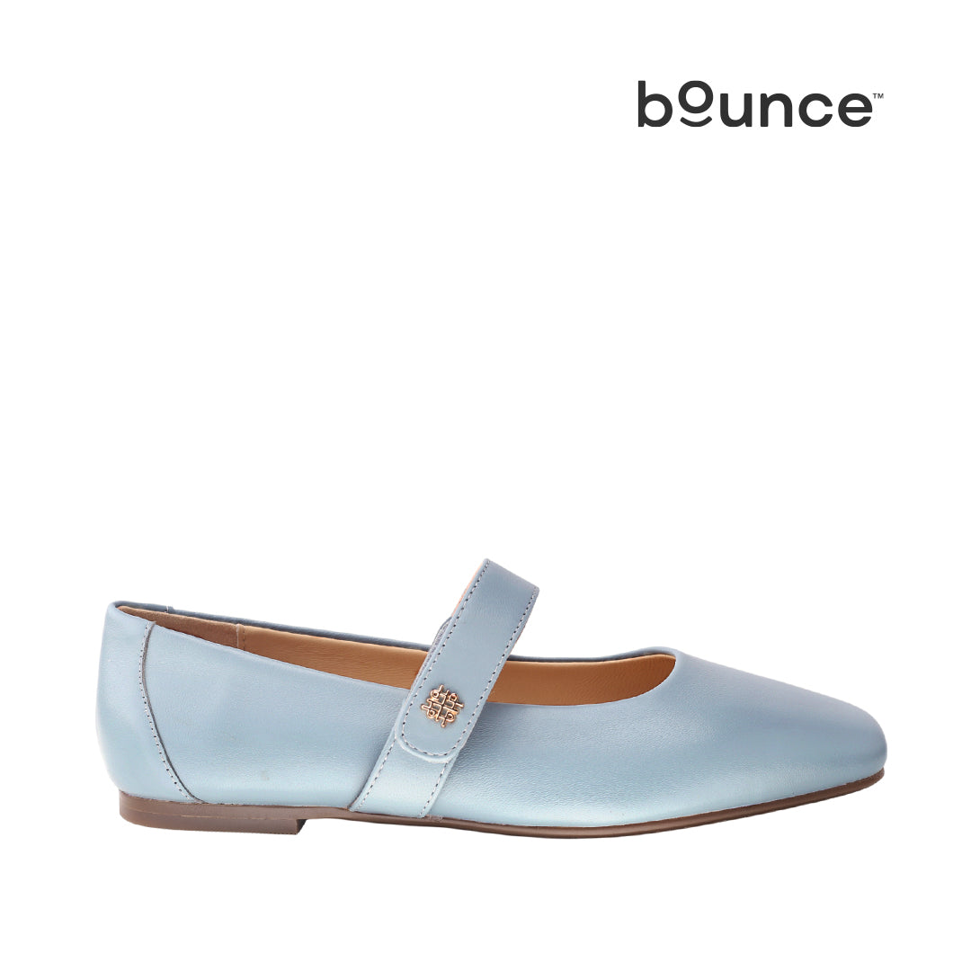 Ballerinas Capri para mujer en color celeste, elaboradas en cuero. Incorporan tecnología Bounce™ con plantilla extraíble que brinda comodidad, rebote de energía en cada paso y gran durabilidad para acompañarte todo el día.