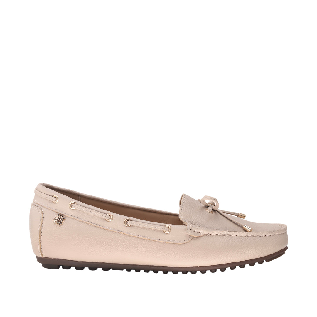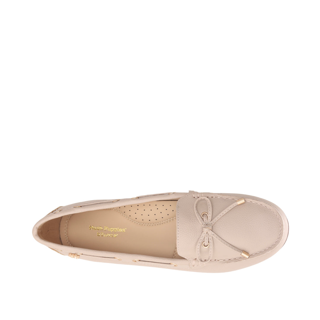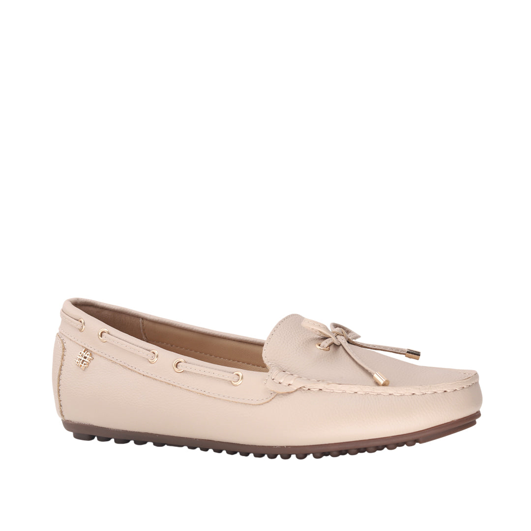 Mocasines Lorry para mujer en color hueso, elaborados en cuero. Incorporan tecnología Bounce™ con plantilla extraíble que ofrece confort, rebote de energía en cada paso y gran durabilidad para un uso cómodo durante todo el día.