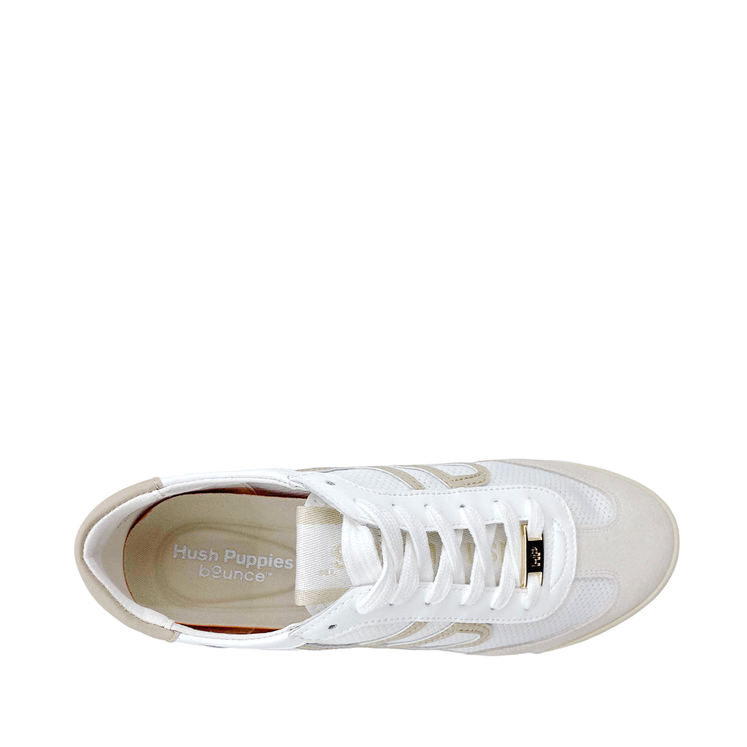 Sneakers Hari para mujer color beige elaborados en cuero y textil. Incorporan la tecnología Bounce™, con plantilla extraíble que proporciona rebotes de energía al caminar y garantiza confort durante todo el día. Su material de alta memoria retorna a su forma original después del uso, ofreciendo una experiencia más duradera y eficiente que otros materiales que solo brindan confort momentáneo.